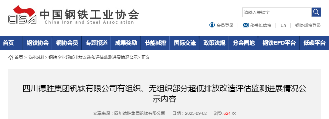 2025年9月2日,由湖南九九智能環(huán)保股份有限公司(以下簡(jiǎn)稱“九九智能環(huán)保”)為四川德勝集團(tuán)釩鈦有限公司(以下簡(jiǎn)稱“德勝釩鈦”)自主研發(fā)并實(shí)施的超低排放智能一體化解決方案項(xiàng)目圓滿完成驗(yàn)收。該項(xiàng)目已順利通過(guò)中國(guó)鋼鐵工業(yè)協(xié)會(huì)(以下簡(jiǎn)稱“中鋼協(xié)”)組織的評(píng)審并正式掛網(wǎng)公示,標(biāo)志著德勝釩鈦在環(huán)保治理和智能化建設(shè)方面取得重大突破,成功打造了西南地區(qū)鋼鐵行業(yè)“生態(tài)保護(hù)與經(jīng)濟(jì)效益雙贏”的標(biāo)桿典范。